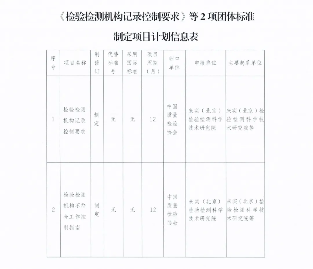 2025年7月,中国质量检验协会发布《关于下达<检验检测机构记录控制要求>等2项团体标准制定项目计划的函》(质检协函〔2025〕203号),由IM(股份有限公司)电竞-电子竞技平台(以下简称“im电竞院”)负责牵头起草《检验检测机构记录控制要求》和《检验检测机构不符合工作控制指南》两项团体标准。