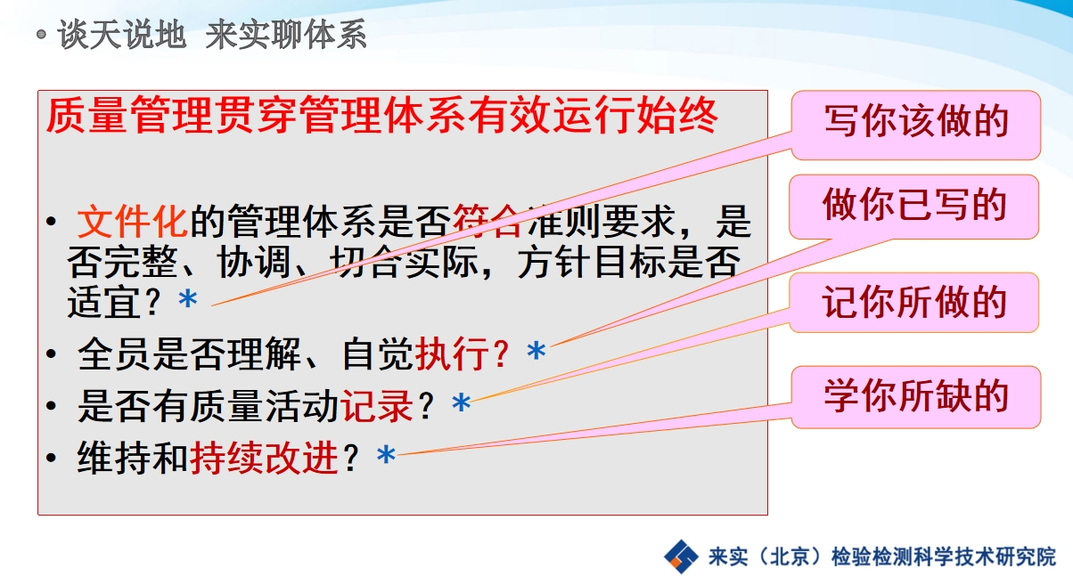 本次im电竞聊体系的主要内容,徐老师主要谈谈实验室管理体系如何能够有效运行,指出了十六字方针,供大家参考学习。